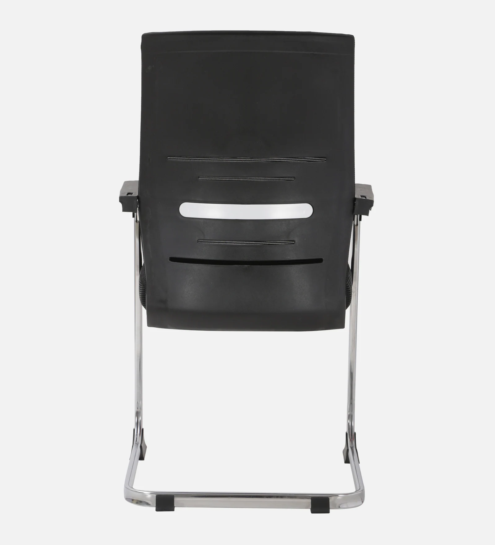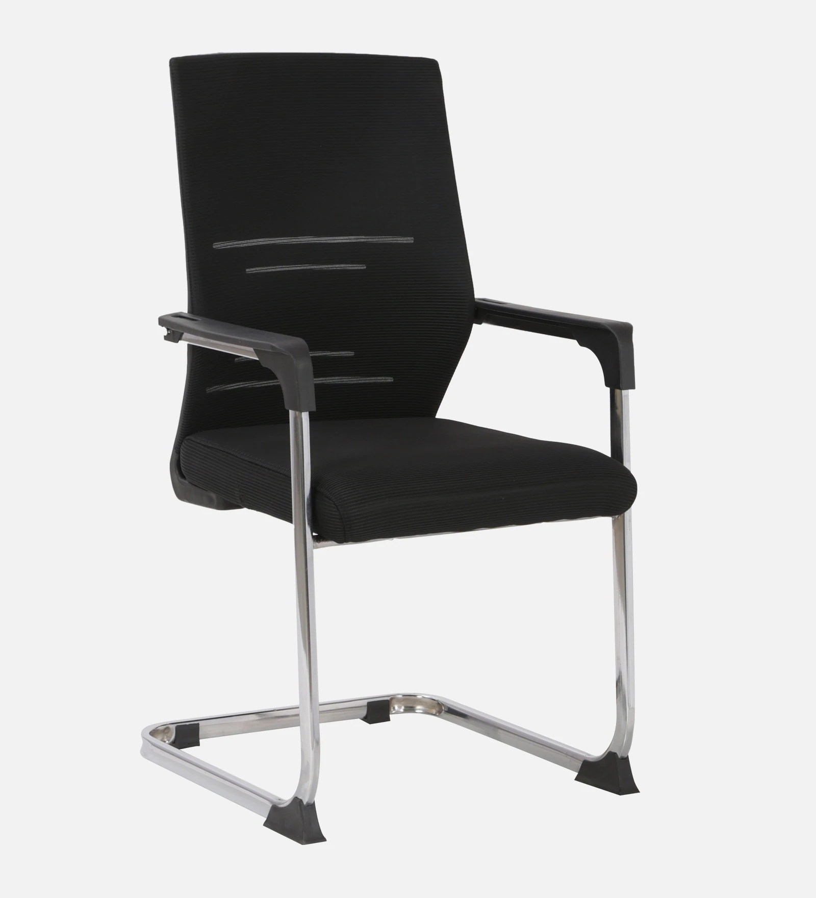 A pleasant Visitor’s Chair with fabric back and seat along with fixed chrome finish armrest with a cushioned top. The heavy-duty chrome sled base perfectly handles the weight of the sitting on it.